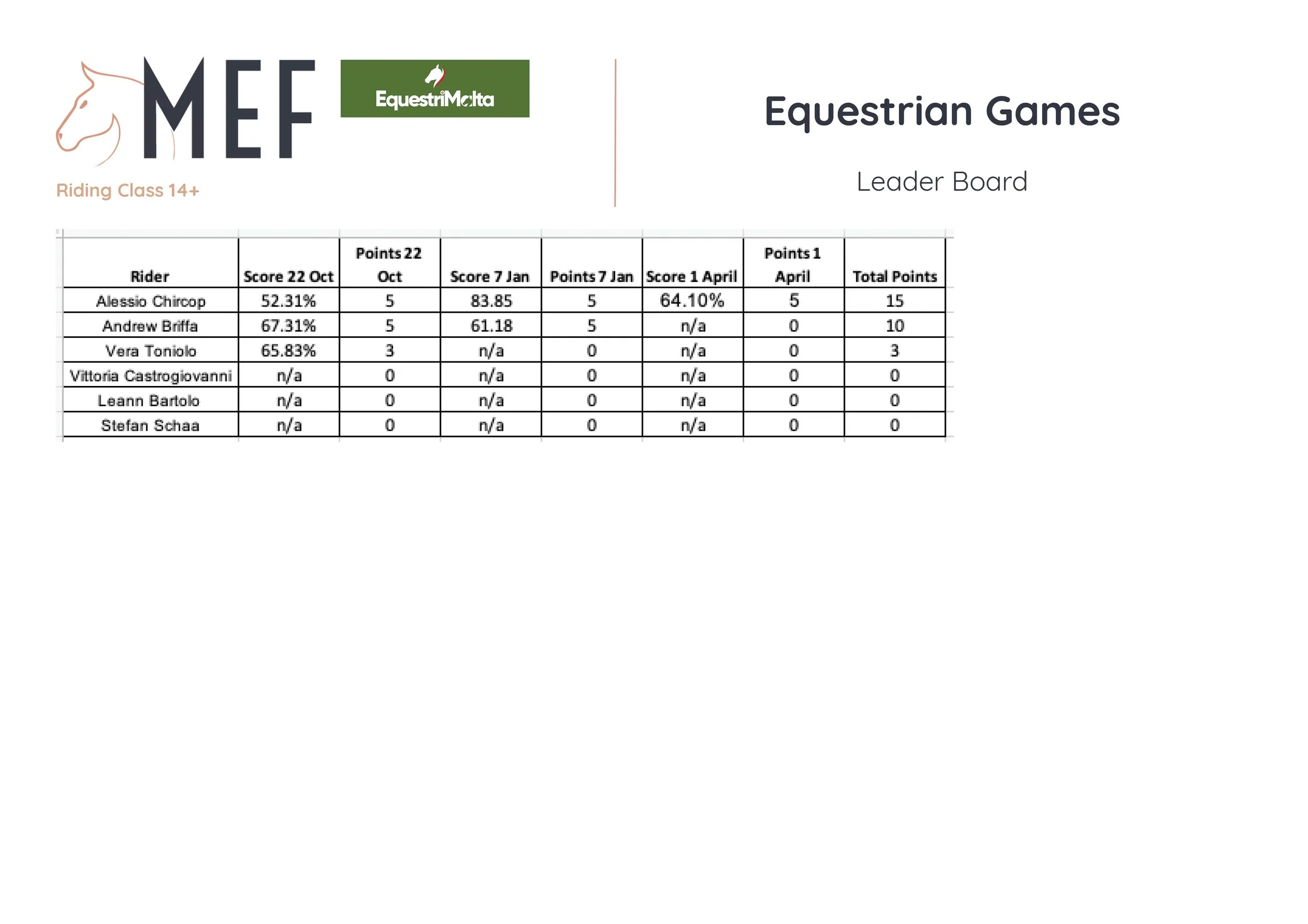 The EquestriMalta Equestrian Games is a series of grassroots competitions intended for riders who are not yet ready to compete in the National Championships. More on how the competition is run is available here.